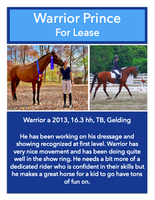 • Some horses are available for full lease. Full leases are a set price per month + the cost of shoeing. Please inquire for specific information on the monthly fee.
